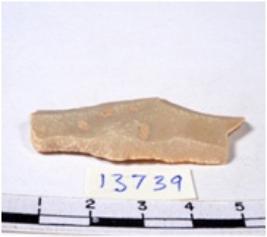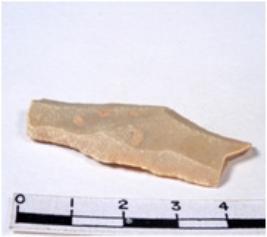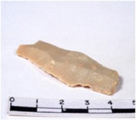 | Description / विवरण | A fragment of a rectangular shaped chert blade showing dorsal sides with sharp cutting edges having smooth surface and uneven section. |