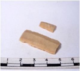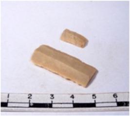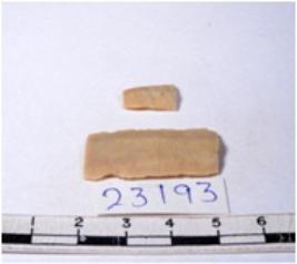 | Description / विवरण | A fragment of a rectangular shaped chert blade showing dorsal sides with sharp edges having smooth surface and triangular section. |