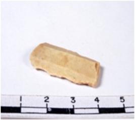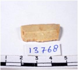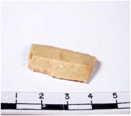 | Description / विवरण | A fragment of a rectangular shaped chert blade showing dorsal sides with sharp cutting edges having smooth surface and triangular section. |