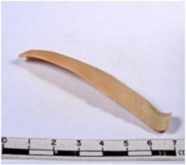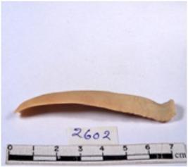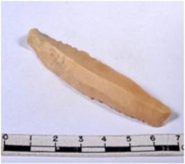 | Description / विवरण | A fragment of a rectangular shaped chert blade showing dorsal sides with sharp edges having smooth surface and triangular section. |