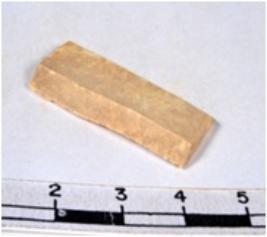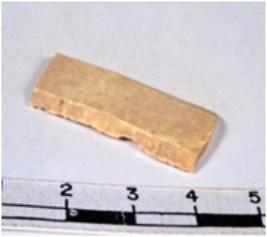 | Description / विवरण | A fragment of a rectangular shaped chert blade showing dorsal sides with sharp edges having smooth surface and triangular section. |