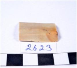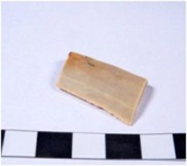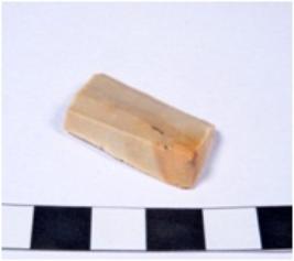 | Description / विवरण | A fragment of a rectangular shaped chert blade showing dorsal sides with sharp cutting edges having smooth surface and triangular section. |