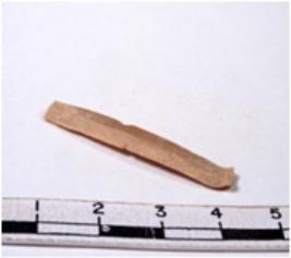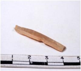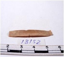 | Description / विवरण | A fragment of a rectangular shaped chert blade showing dorsal sides with sharp edges having smooth surface and triangular section. |