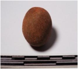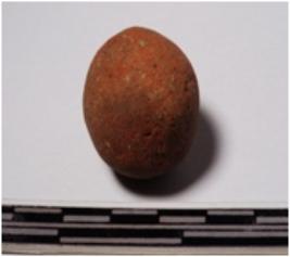| Description / विवरण | A terracotta round shaped sling ball of smooth surface. |