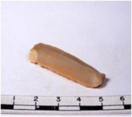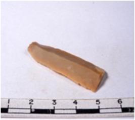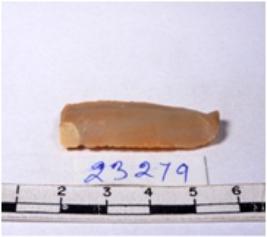 | Description / विवरण | A fragment of a rectangular shaped chert blade showing dorsal sides with sharp edges having smooth surface and triangular section. |