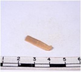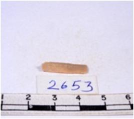 | Description / विवरण | A fragment of a rectangular shaped chert blade showing dorsal sides with sharp edges having smooth surface and triangular section. |