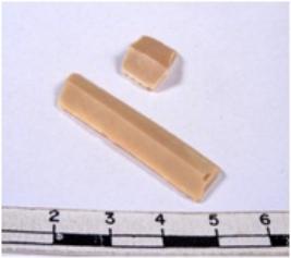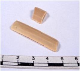 | Description / विवरण | A fragment of a rectangular shaped chert blade showing dorsal sides with sharp cutting edges having smooth surface and triangular section. |