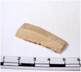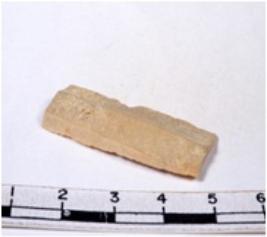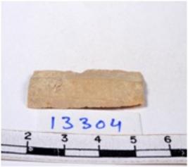 | Description / विवरण | A fragment of a rectangular shaped chert blade showing dorsal sides with sharp edges having smooth surface and triangular section. |