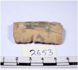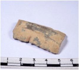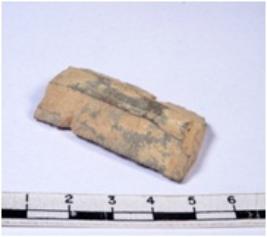| Description / विवरण | A fragment of a rectangular shaped chert blade showing parallel sides with broken edges having smooth surface and uneven section. |