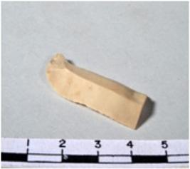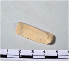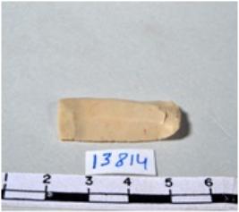 | Description / विवरण | A fragment of a rectangular shaped chert blade showing dorsal sides with sharp cutting edges having smooth surface and triangular section. |