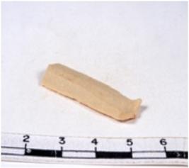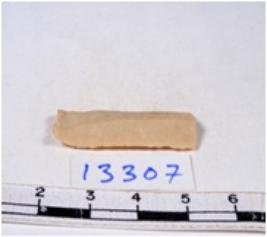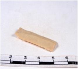 | Description / विवरण | A fragment of a rectangular shaped chert blade showing dorsal sides with sharp edges having smooth surface and triangular section. |