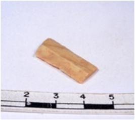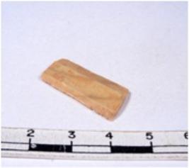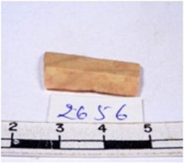 | Description / विवरण | A fragment of a rectangular shaped chert blade showing dorsal sides with sharp cutting edges having smooth surface and triangular section. |