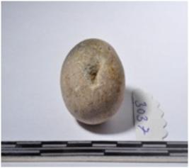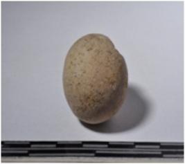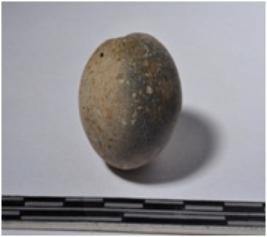 | Description / विवरण | A terracotta sling ball round in shape of smooth surface. |
