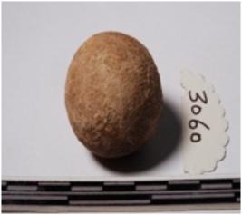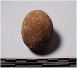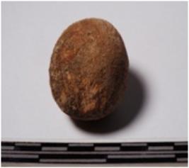 | Description / विवरण | A terracotta sling ball round in shape of smooth surface. |
