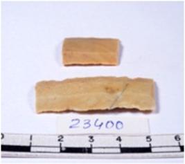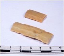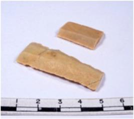 | Description / विवरण | A fragment of a rectangular shaped chert blade showing dorsal sides with sharp edges having smooth surface and triangular section. |