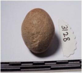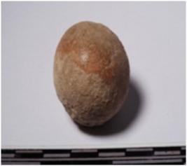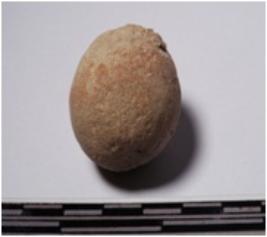 | Description / विवरण | A terracotta sling ball round in shape of smooth surface. |