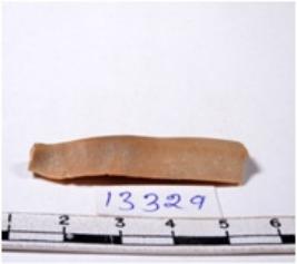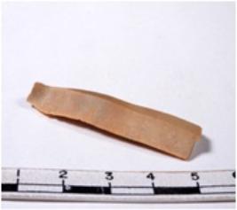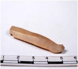 | Description / विवरण | A fragment of a rectangular shaped chert blade showing dorsal sides with sharp cutting edges having smooth surface and triangular section. |