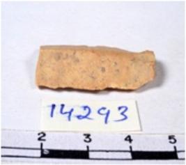 | Description / विवरण | A fragment of a rectangular shaped chert blade showing dorsal sides with sharp cutting edges having smooth surface and uneven section. |