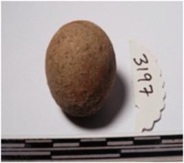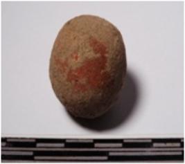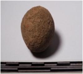 | Description / विवरण | A terracotta sling ball round in shape of smooth surface. |