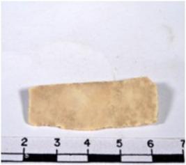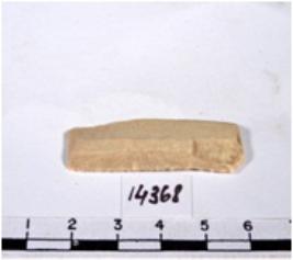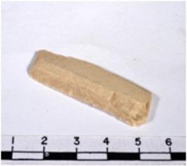 | Description / विवरण | A fragment of a rectangular shaped chert blade showing dorsal sides with sharp cutting edges having rough surface and triangular section. |