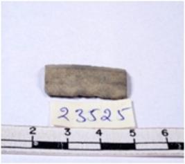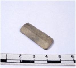 | Description / विवरण | A fragment of a rectangular shaped chert blade showing dorsal sides with sharp edges having smooth surface and triangular section. |