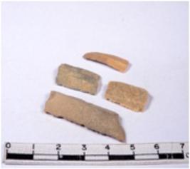 | Description / विवरण | A fragment of a rectangular shaped chert blade showing dorsal sides with sharp edges having smooth surface and triangular section. |