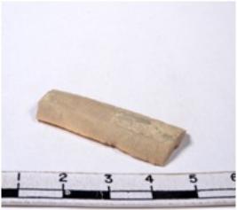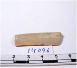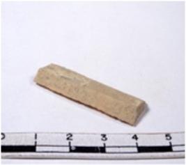 | Description / विवरण | A fragment of a rectangular shaped chert blade showing dorsal sides with sharp cutting edges having smooth surface and triangular section. |