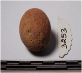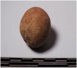 | Description / विवरण | A terracotta round in shaped sling ball of smooth surface. |