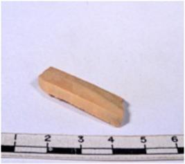 | Description / विवरण | A fragment of a rectangular shaped chert blade showing dorsal sides with sharp edges having smooth surface and triangular section. |