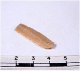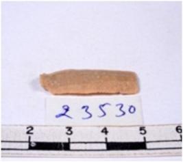 | Description / विवरण | A fragment of a rectangular shaped chert blade showing dorsal sides with sharp edges having smooth surface and triangular section. |