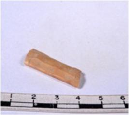| Description / विवरण | A fragment of a rectangular shaped chert blade showing parallel sides with sharp edges having smooth surface and triangular section. |