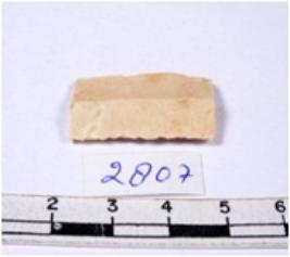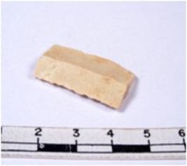 | Description / विवरण | A fragment of a rectangular shaped chert blade showing dorsal sides with sharp edges having smooth surface and triangular section. |