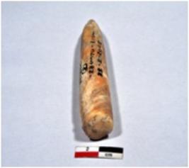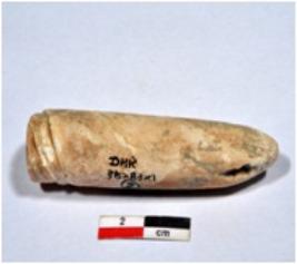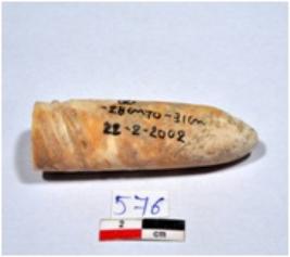| Description / विवरण | A standard sized shell point showing conical in shaped, pointed on one end, screw mark on upper part, having fine surface. |