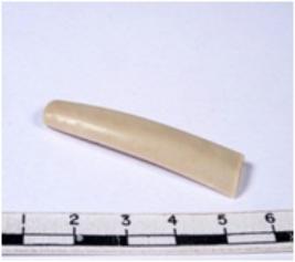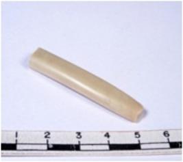 | Description / विवरण | A fragment of a rectangular shaped chert blade showing dorsal sides with sharp edges having smooth surface and triangular section. |