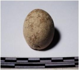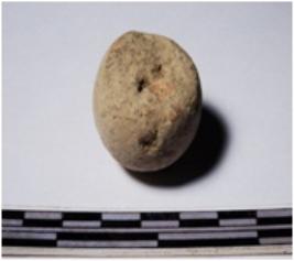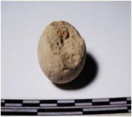 | Description / विवरण | A fragment of a terracotta sling ball of smooth surface. |