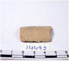 | Description / विवरण | A fragment of a rectangular shaped chert blade showing dorsal sides with sharp edges having smooth surface and triangular section. |