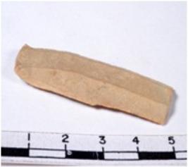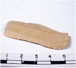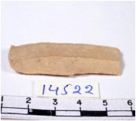 | Description / विवरण | A fragment of a rectangular shaped chert blade showing dorsal sides with sharp edges having smooth surface and triangular section. |