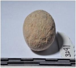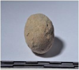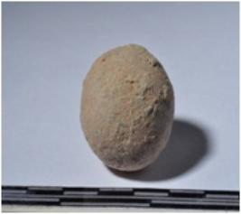 | Description / विवरण | A terracotta round shaped sling ball of smooth surface. |