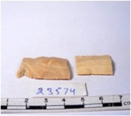 | Description / विवरण | A fragment of a rectangular shaped chert blade showing dorsal sides with sharp edges having smooth surface and triangular section. |