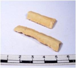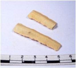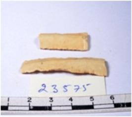 | Description / विवरण | A fragment of a rectangular shaped chert blade showing dorsal sides with sharp edges having smooth surface and triangular section. |