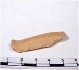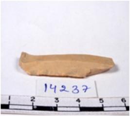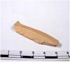 | Description / विवरण | A fragment of a rectangular shaped chert blade showing dorsal sides with sharp edges having smooth surface and triangular section. |