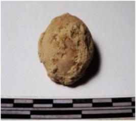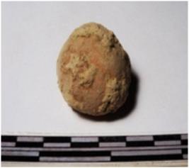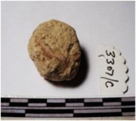 | Description / विवरण | A fragment of a terracotta ball round in shape of rough surface. |