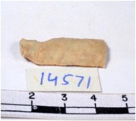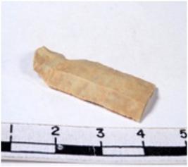 | Description / विवरण | A fragment of a rectangular shaped chert blade showing dorsal sides with sharp cutting edges having smooth surface and uneven section. |