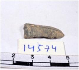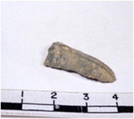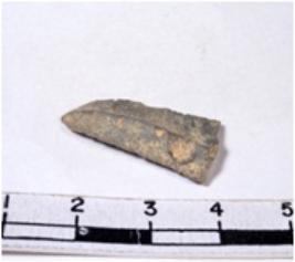 | Description / विवरण | A fragment of a rectangular shaped chert blade showing dorsal sides with sharp cutting edges having smooth surface and triangular section. |
