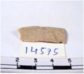 | Description / विवरण | A fragment of a rectangular shaped chert blade showing dorsal sides with sharp cutting edges having smooth surface and triangular section. |