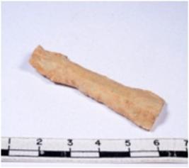 | Description / विवरण | A fragment of a rectangular shaped chert blade showing dorsal sides with sharp cutting edges having smooth surface and triangular section. |