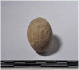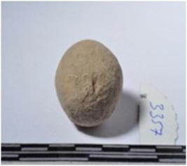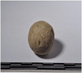 | Description / विवरण | A terracotta sling ball round in shape of smooth surface. |