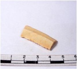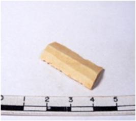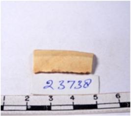 | Description / विवरण | A fragment of a rectangular shaped chert blade showing dorsal sides with sharp cutting edges having smooth surface and triangular section. |
