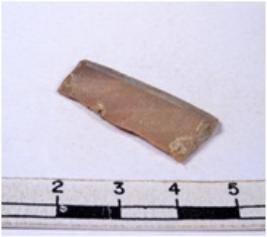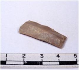 | Description / विवरण | A fragment of a rectangular shaped chert blade showing dorsal sides with sharp edges having smooth surface and triangular section. |