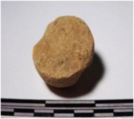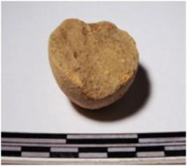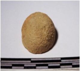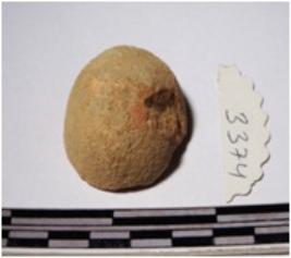 | Description / विवरण | A fragment of a terracotta sling ball round in shape of smooth surface. |